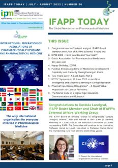 The IFAPP Communication Working Group is glad to share the seventh edition of 2022 of “IFAPP TODAY”, a monthly newsletter informing the global pharmaceutical medicine community of the latest news. We welcome input from all member associations, individual affiliates and followers.