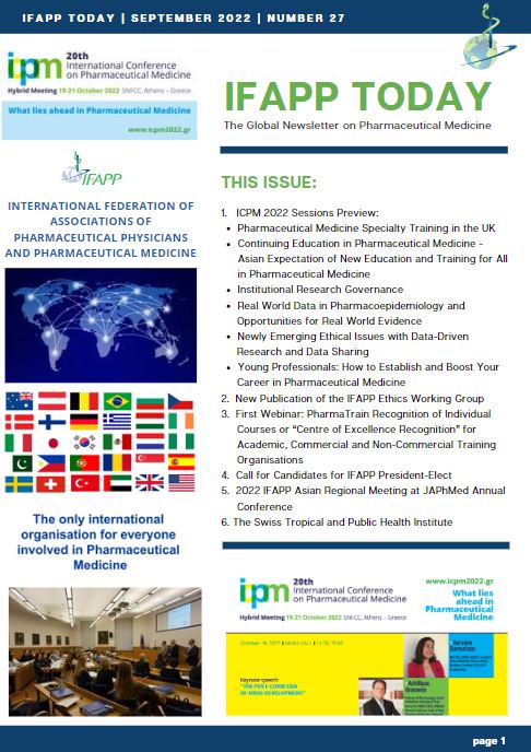 The IFAPP Communication Working Group is glad to share the eighth edition of 2022 of “IFAPP TODAY”, a monthly newsletter informing the global pharmaceutical medicine community of the latest news. We welcome input from all member associations, individual affiliates and followers.